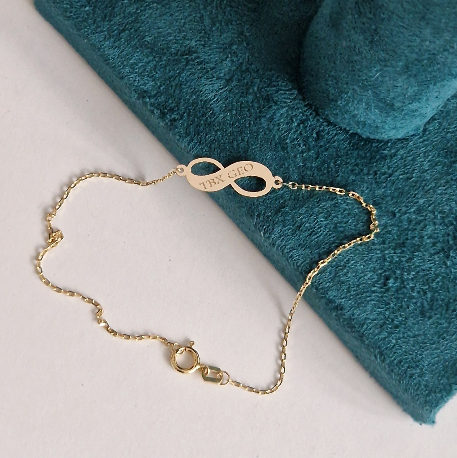Brățară rafinată din aur de 14K, ce îmbină eleganța clasică cu simbolismul atemporal al infinitului, această bijuterie delicată exprimă legături profunde și sentimente care dăinuie în timp.